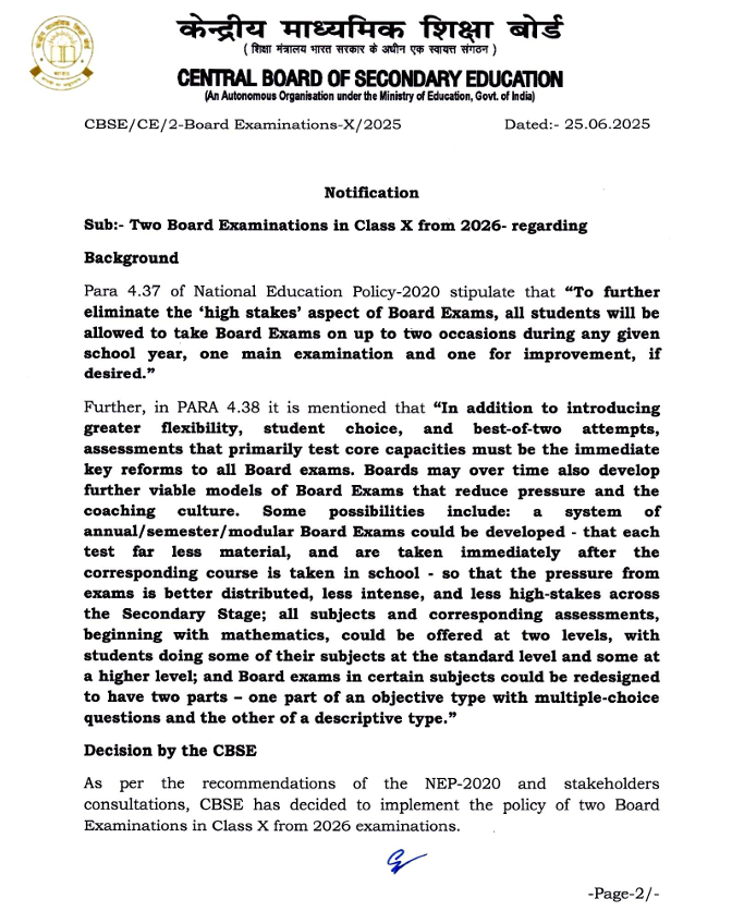 According to the Board, this step is part of its larger plan to make board exams more student-friendly and less stressful. By giving students a second chance, CBSE aims to reduce the pressure of one-time, high-stakes exams and make the evaluation process more flexible and fair.