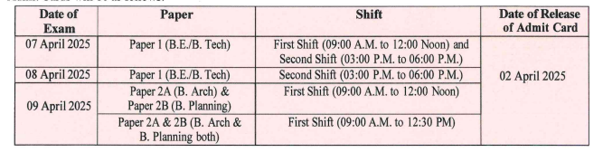 | JEE Main 2025 Exam Date- Session 2 | 02,03,04,07, 08 & 09 April 2025 |