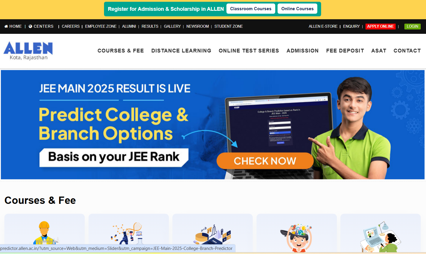 • Allen Kota Address: SANKALP” CP-6, Indra Vihar Kota (Rajasthan), India 324005