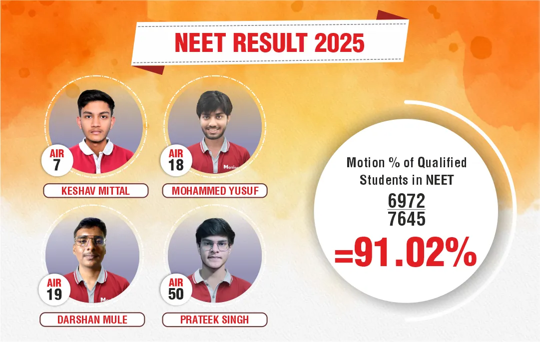 MOTION has long been distinguished for providing the Best Classroom Coaching, Online Learning Facility and getting excellent results. The curriculum is specifically designed for the NEET aspirants along with their Class 12th preparations. To strengthen the foundation, conceptual knowledge and enhance the academic skills this course is the best option. The course helps the aspirants with better understanding of the examination pattern and ensure their success in the NEET with ease through a year-long curriculum.