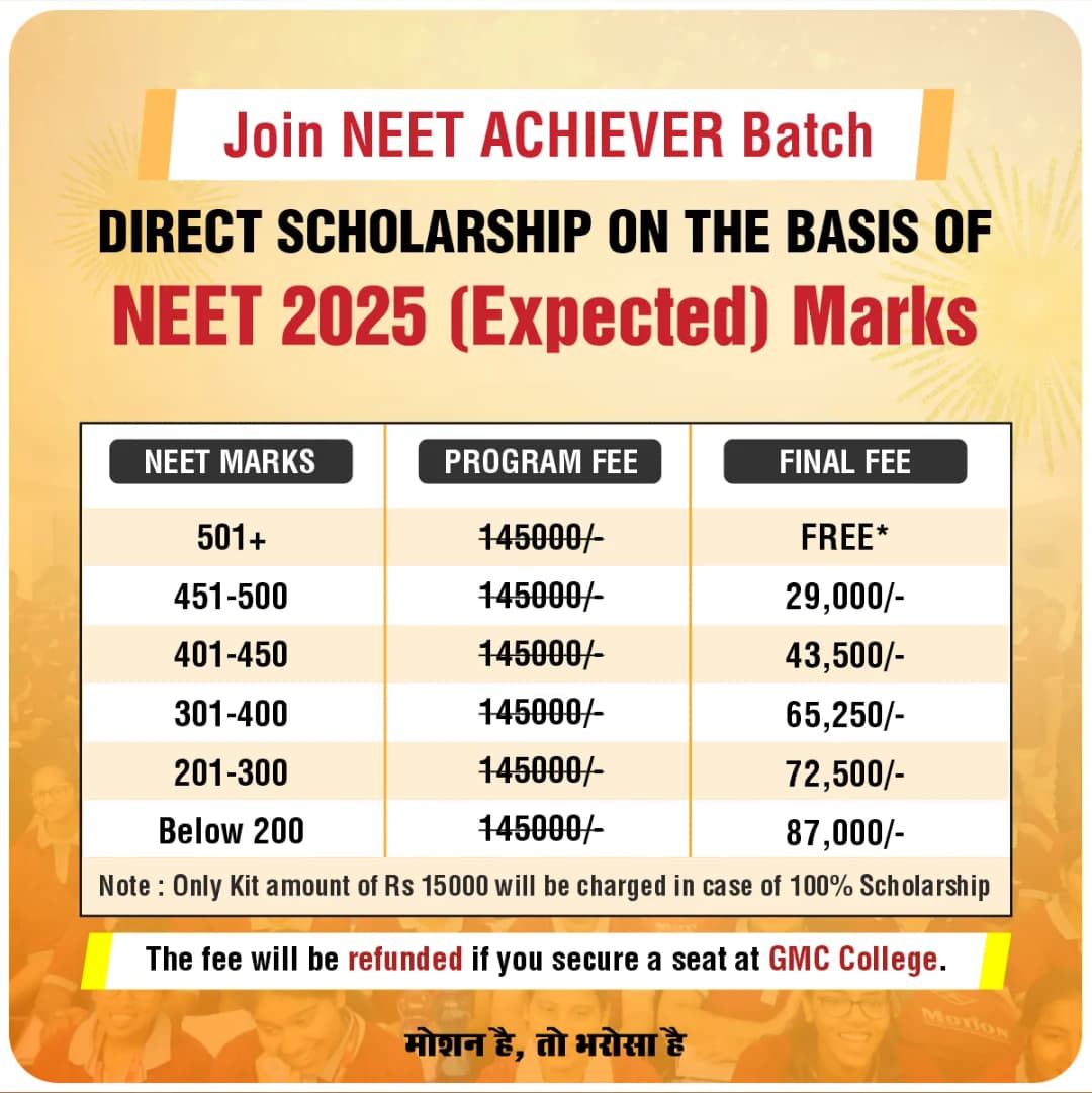 No Charge: At Motion Education, we are focused on quality education available for all. The NEET Rank & College Predictor Tool 2025 is FREE and we welcome all aspirants to use it!